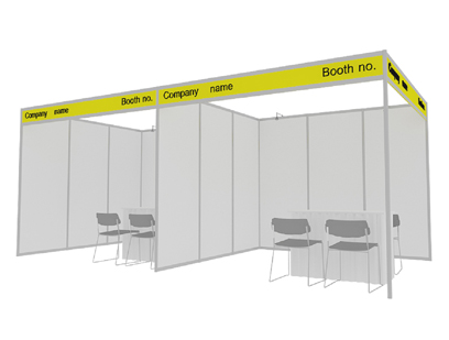Shell scheme package consists of the hard wall system, fascia, 4 chairs, 1 desk, 1 socket (5 Amp), 2 spotlights (100 W),